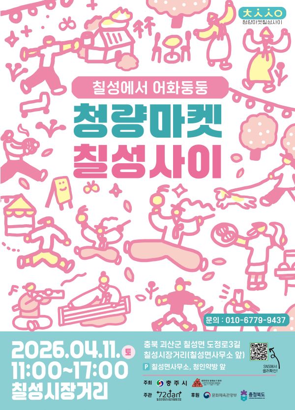 | 열리는 장소 | 괴산군 칠성면 칠성시장거리 일원 (칠성시장거리 칠리단길 또는 비밀의정원) | 재미있는 볼거리 놀거리가 있다면 인접 장소로 이동할 수 있어요 내비에 '칠성면사무소' 또는 '괴산 청인약방'을 찍고 주차하시면 편해요 |